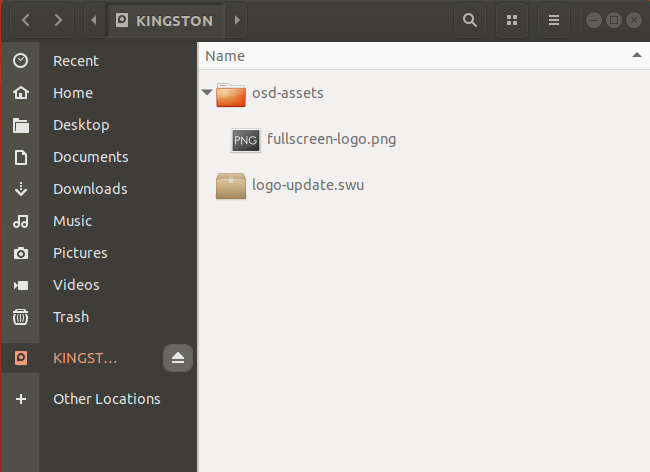 - Copy your new logo \"fullscreen-logo.png\" to \"osd-assets\" directory. Your USB drive directory structure should now look like this: